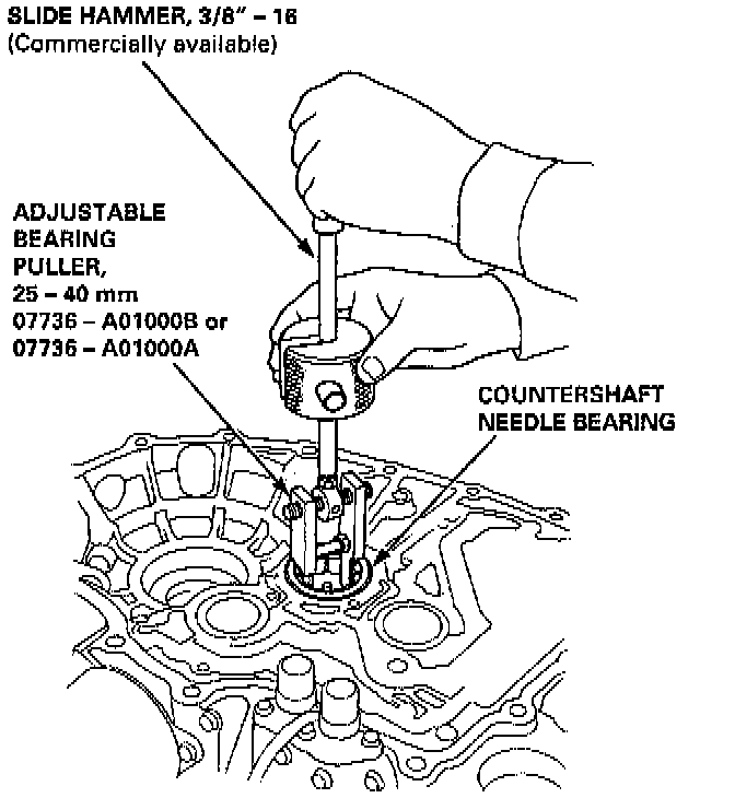 1. Remove the countershaft bearing using the special tools as shown.