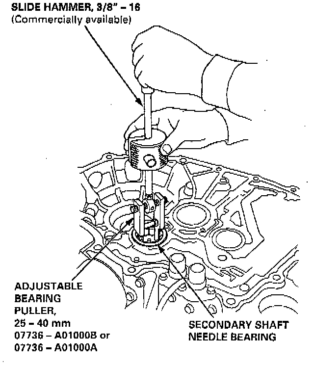 1. Remove the secondary shaft bearing using the special tools as shown.