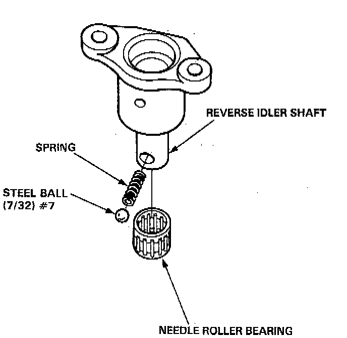 2. Set the spring in the reverse idler shaft. Push the spring in with the steel ball, then install the needle bearing.