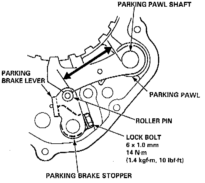 5. If the pawl does not engage fully, check the parking brake pawl stopper clearance.
