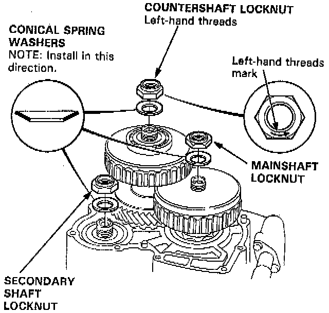 NOTE: The countershaft locknut has left-hand threads.