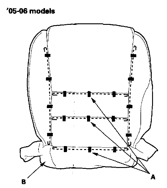 - To prevent wrinkles when installing a seat-back cover, make sure the material is stretched evenly over the pad before securing the hooks, fasteners (05-06 models), and clips.