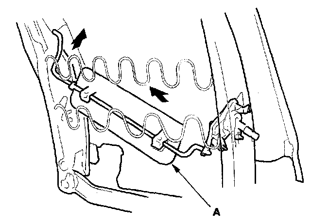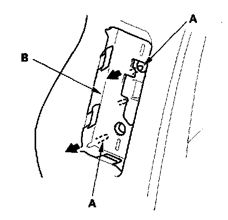 5. Detach the clips (A) of the airbag module holder (B) from the seat-back frame.