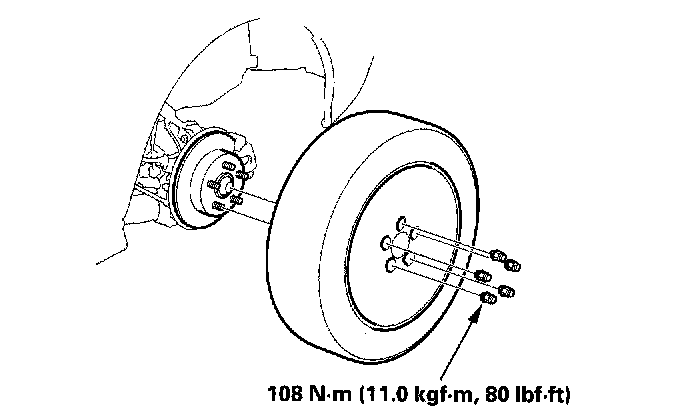 2. Remove the wheel cap, wheel nuts, and rear wheel.