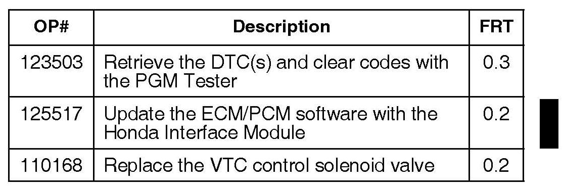 *Update the ECM/PCM software and if necessary, replace the VTC control solenoid valve.*