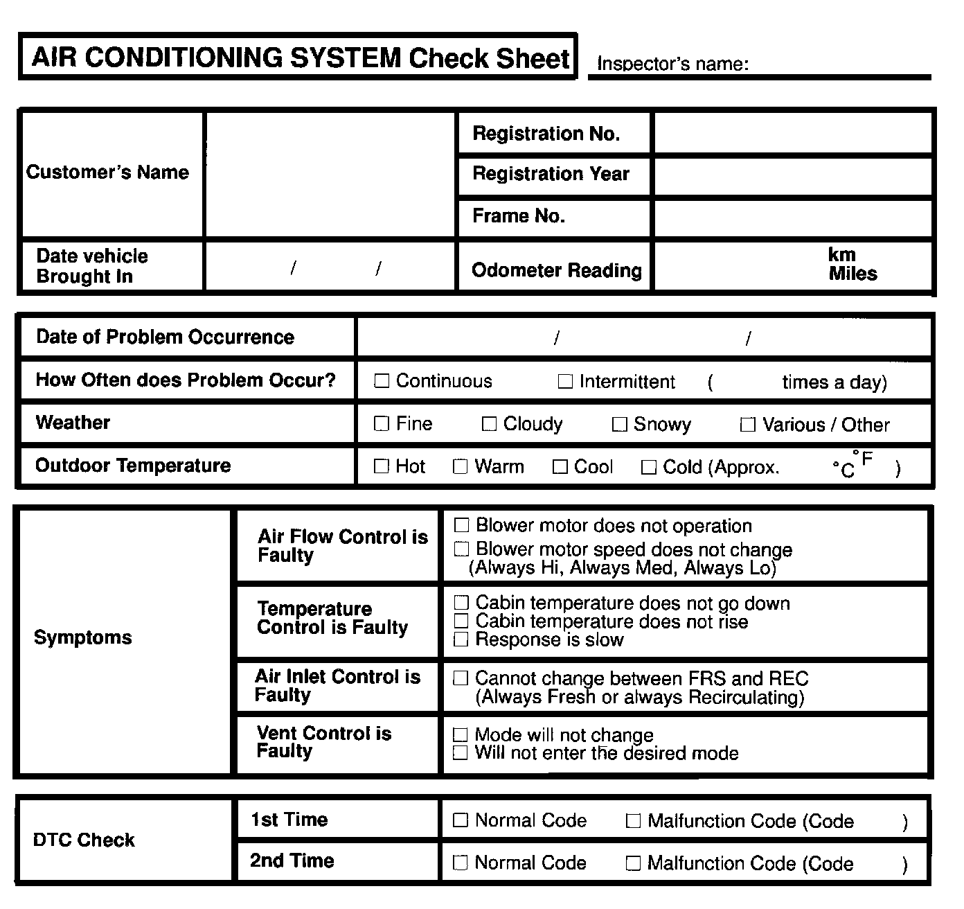 CUSTOMER CHECK SHEET