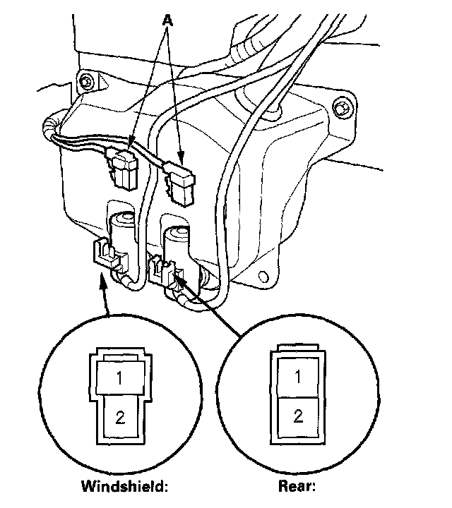 3. Test the motor by connecting battery power to the No.1 terminal and ground the No.2 terminal of the washer motor. The motor should run.