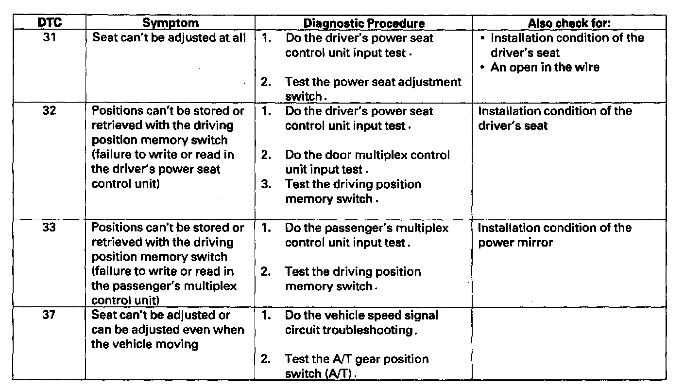 DTC List - Memory Position System