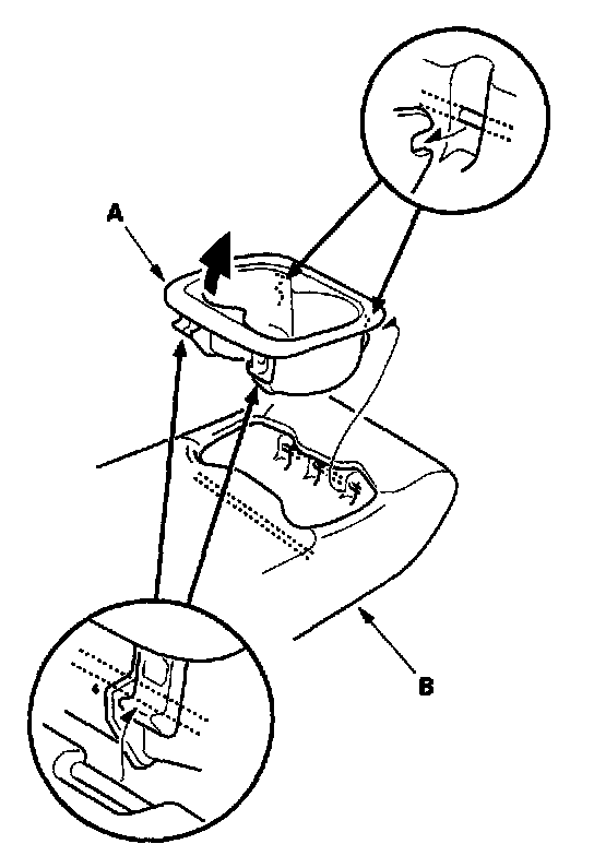 3. Remove the beverage holder (A) from the armrest (B).