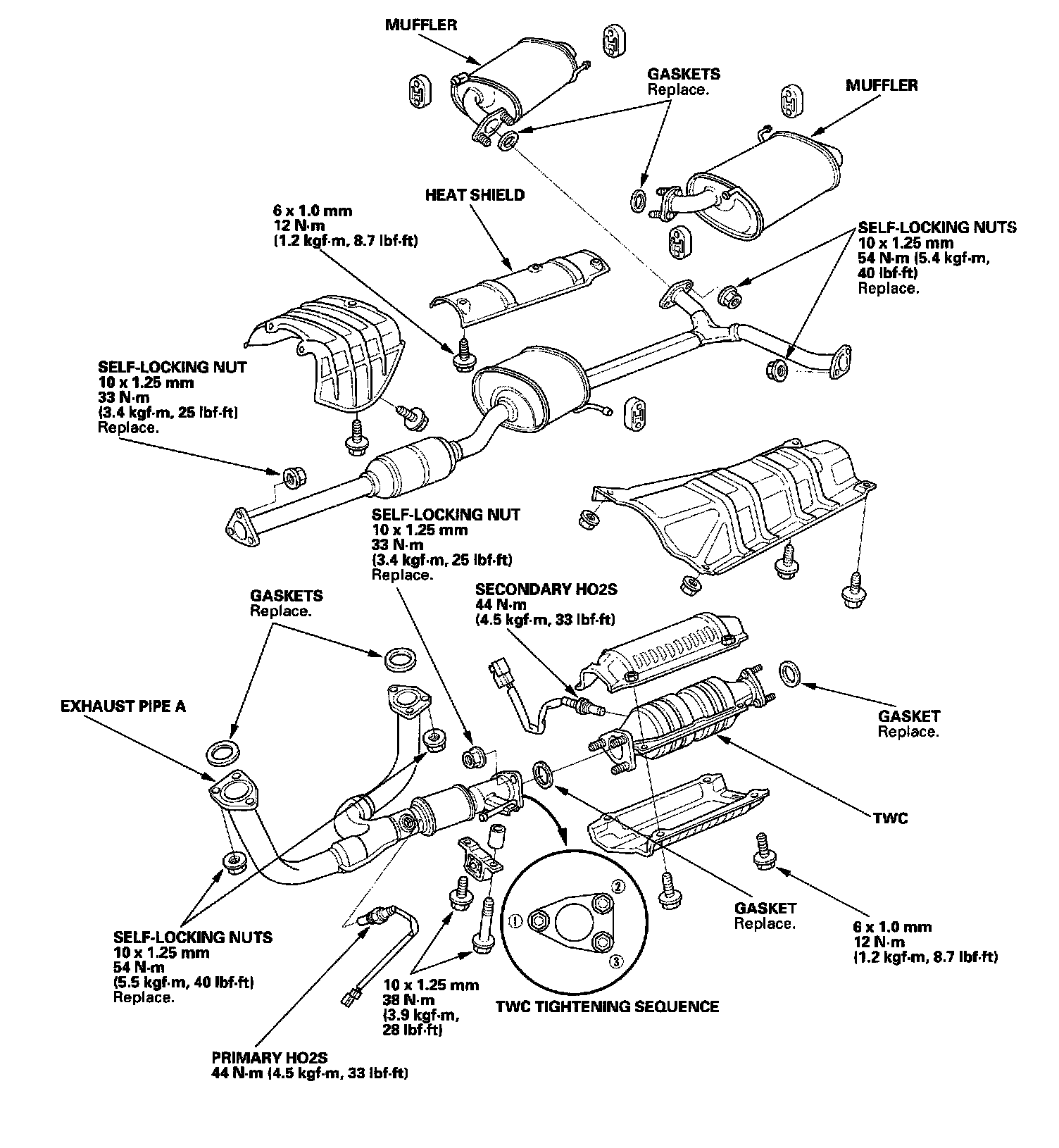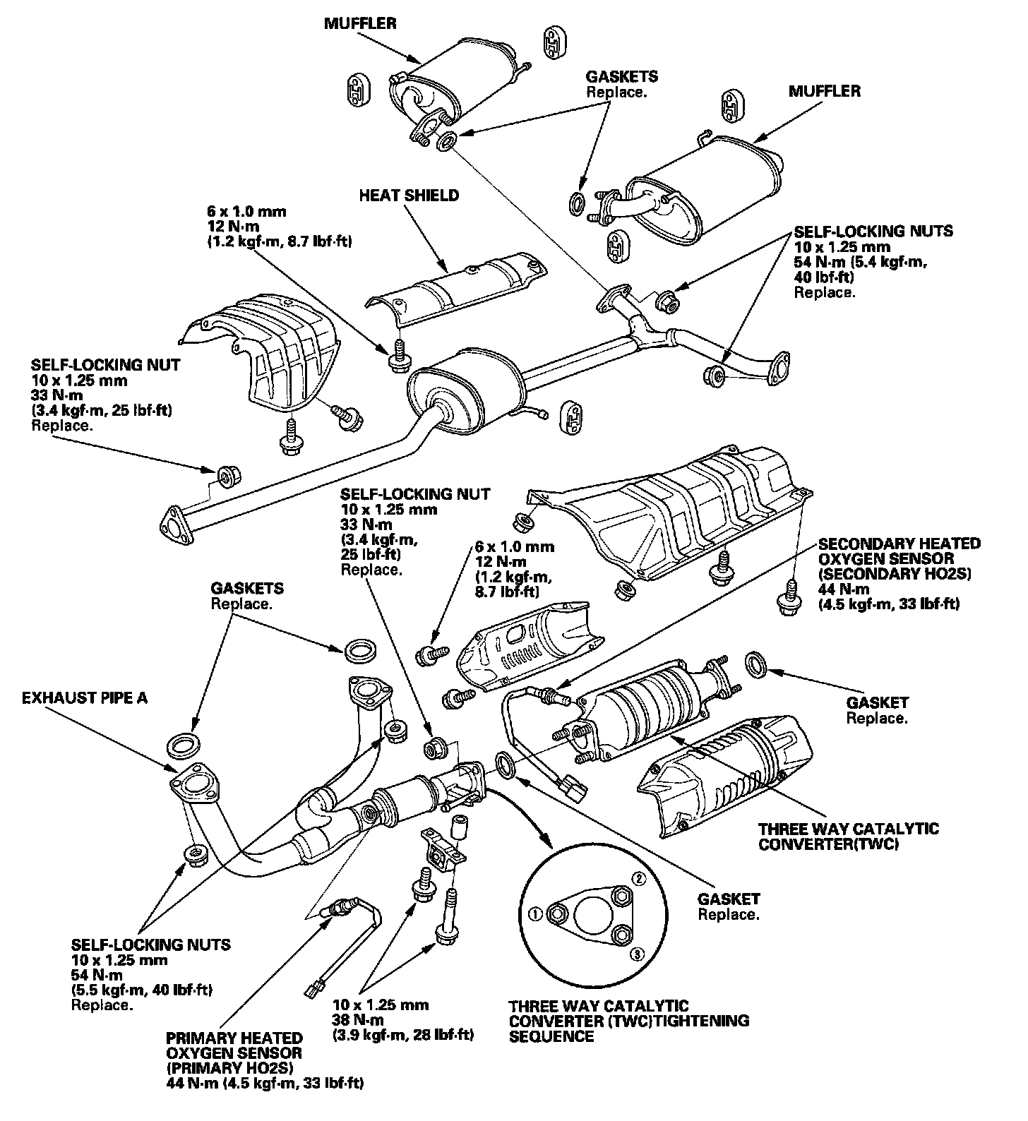 Use new gaskets and self-locking nuts when reassembling.