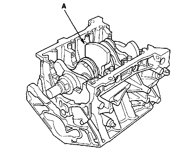6. Lower the crankshaft (A) into the block.