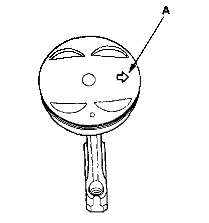 12. Position the piston with the arrow (A) facing the timing belt side of the engine.