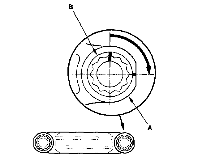 17. Mark the connecting rod (A) and bolt head (B) as shown.