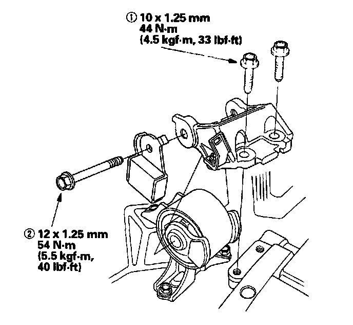 16. Install the side engine mount bracket, then tighten the mounting bolts in the numbered sequence shown.