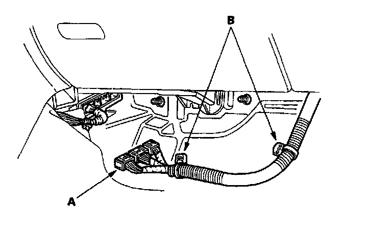 34. Connect the ECM/PCM connector (A), and install the harness clamps (B).