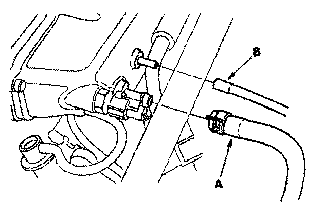32. Install the upper radiator hose (A) and lower radiator hose (B).