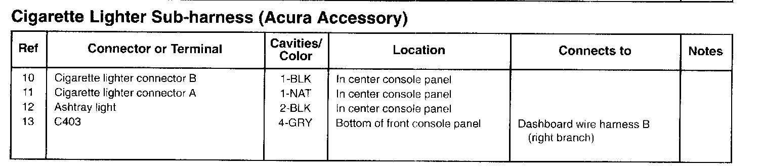 Cigarette Lighter Sub-harness (Acura Accessory):