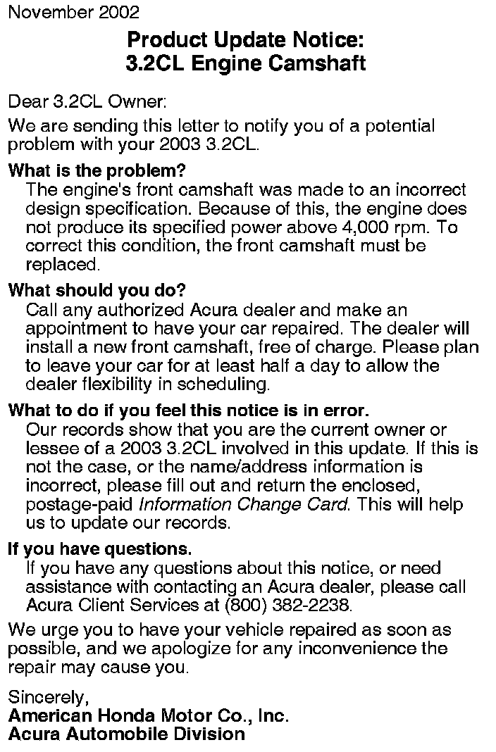Campaign - Front Camshaft Replacement