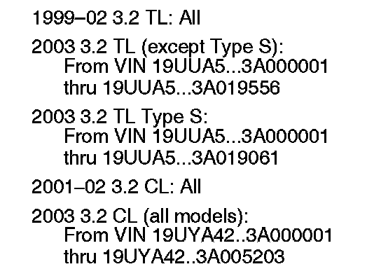 3.2 TL and 3.2 CL Automatic Transmission (Supersedes 02-027, dated January 7, 2007, to update the information marked by asterisks)