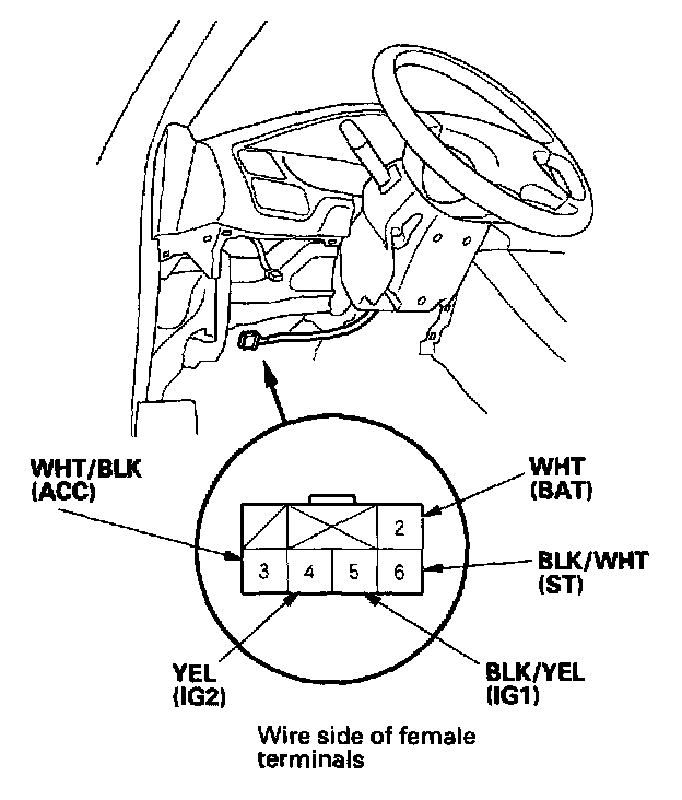 6. If the continuity checks do not agree with the table, replace the steering lock.
