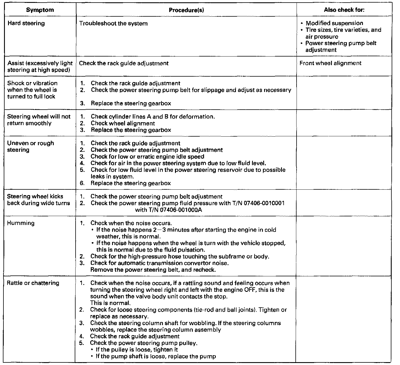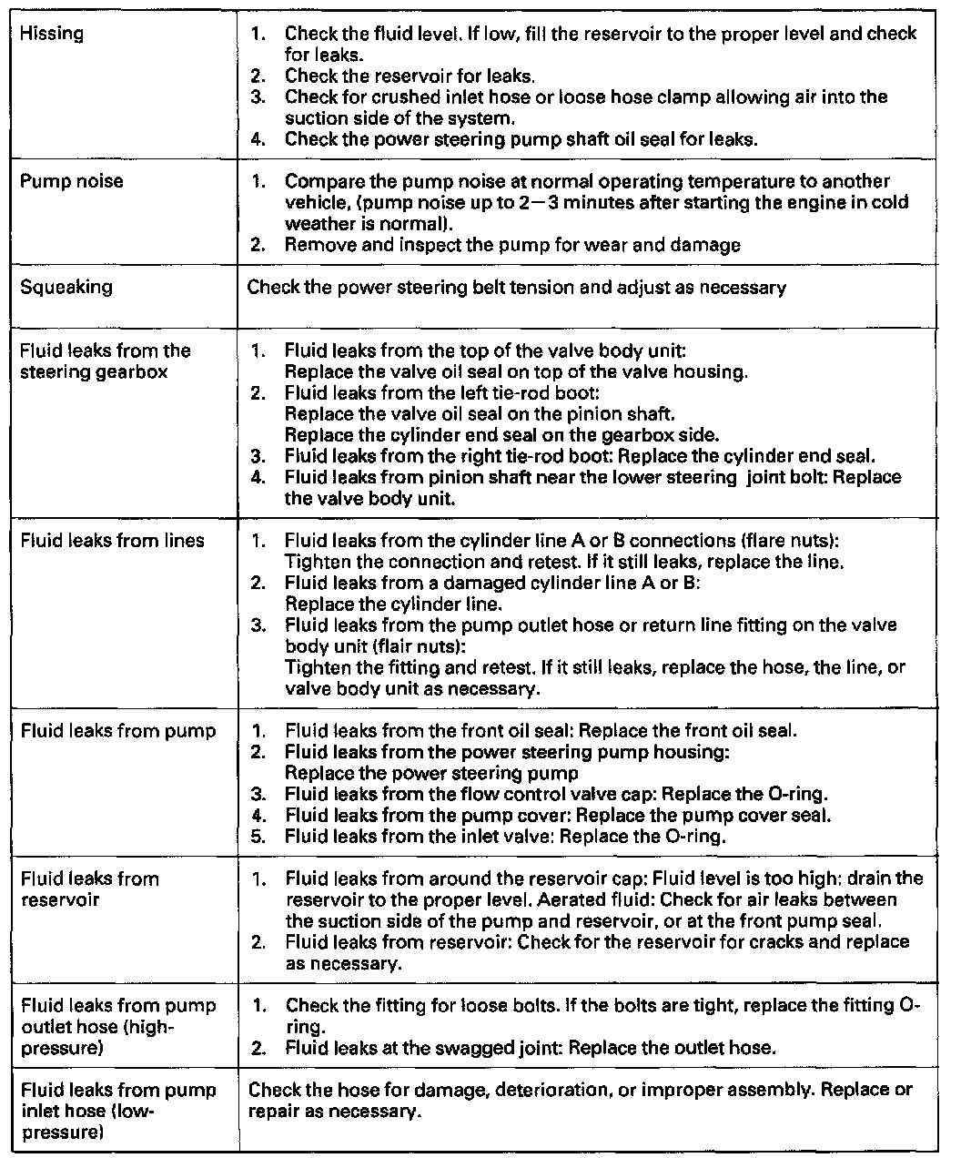 Find the symptom in the chart, and do the related procedures in the order listed until you find the cause.