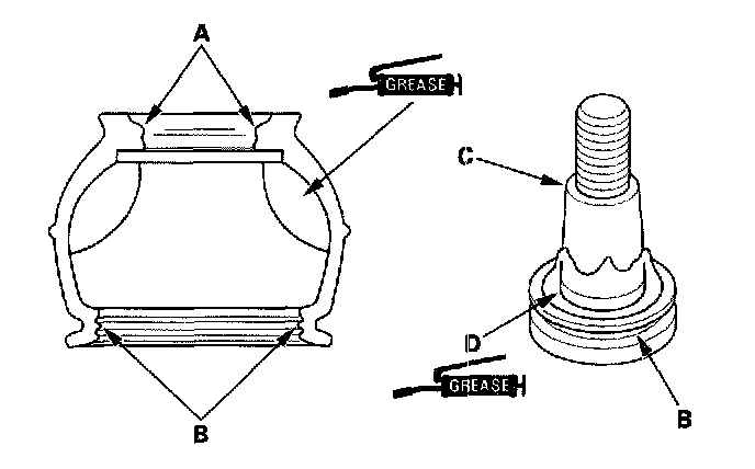3. Wipe the grease off the tapered section (C) of the pin, and pack fresh grease into the base (D). Do not let dirt, or other foreign materials get into the boot.