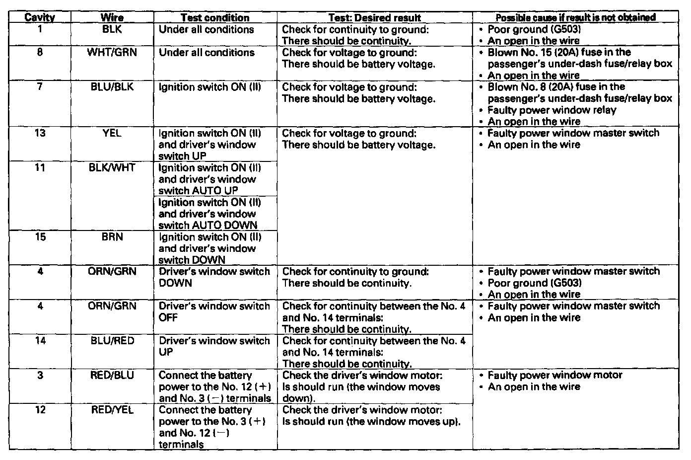 Power WindowsControl Unit Input Test/Replacement