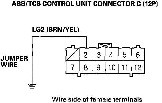 6. Connect the ABS/TCS control unit connector C (12P) terminal No. 2 and body ground with a jumper wire.
