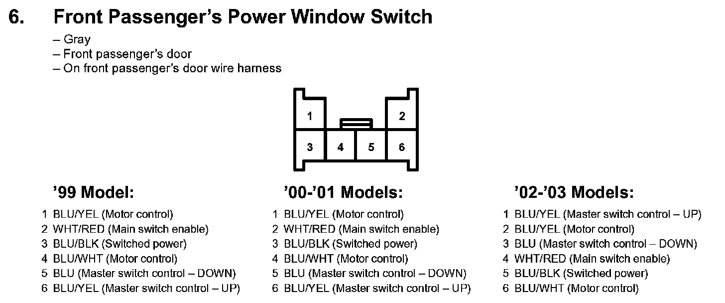 6. Front Passenger's Power Window Switch: