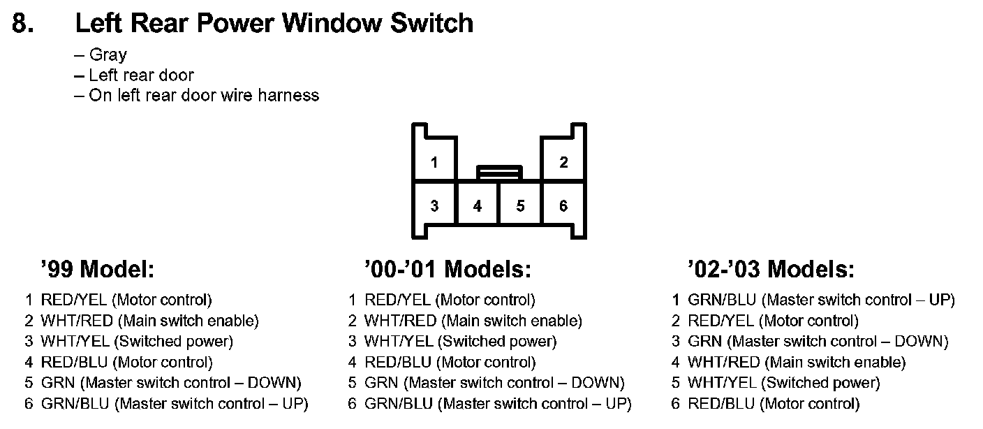8. Left Rear Power Window Switch: