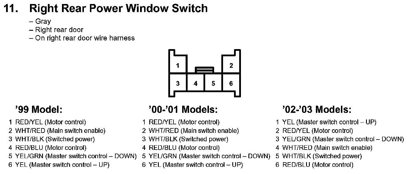 11. Right Rear Power Window Switch: