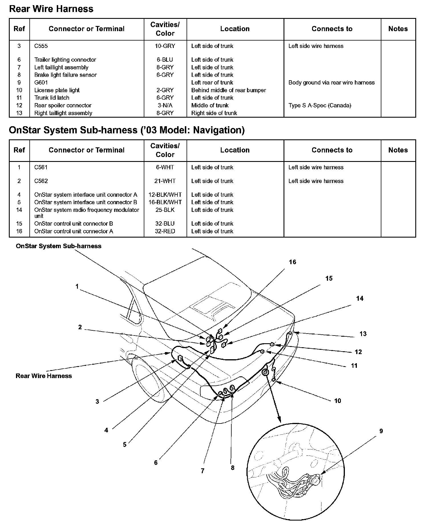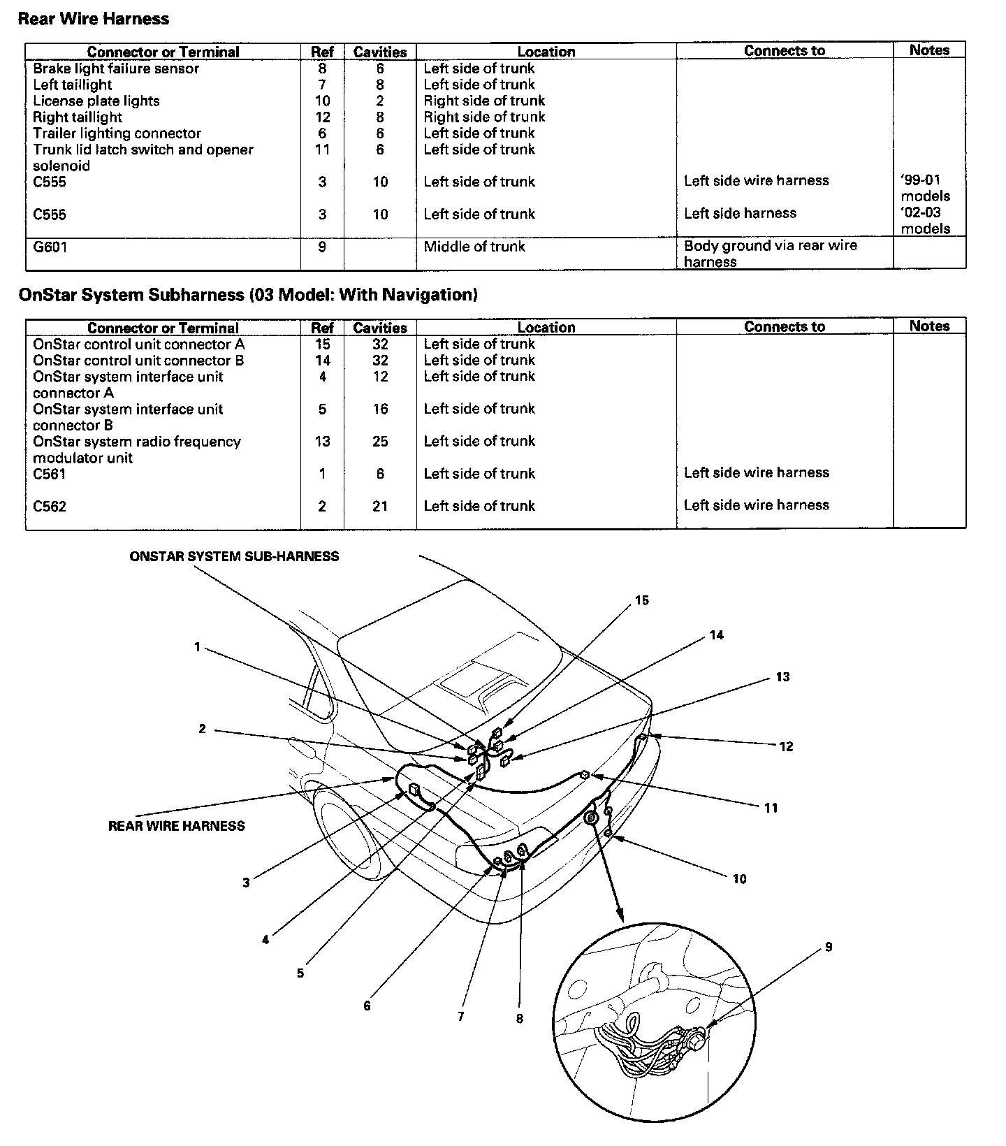 Rear Wire Harness/OnStar System Sub-harness ('03 Model: Navigation):
