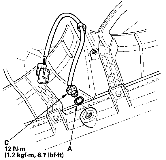 Install radiator fan switch C with a new O-ring (A).
