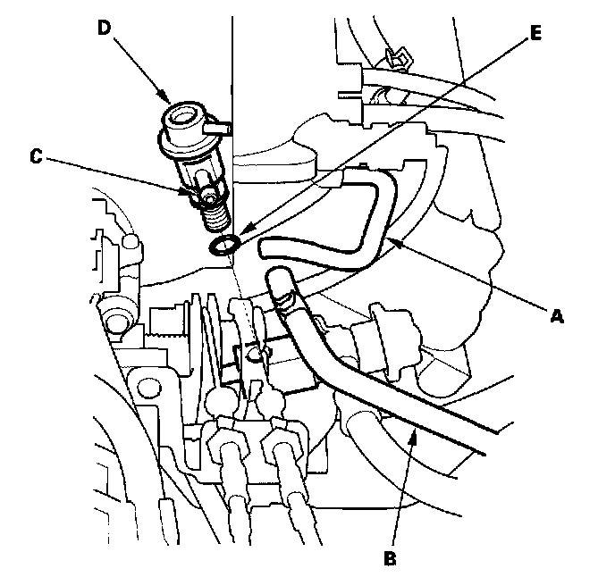 4. Apply clean engine oil to a new O-ring (E), and carefully install it into its proper position.