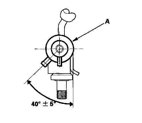 6. Turn the fuel pressure regulator (A) counterclockwise to set the angle as shown.