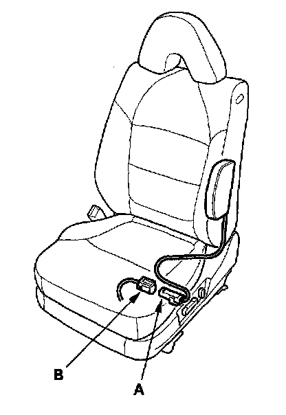 4. Disconnect both side airbag 2P connectors (A) from the side wire harness 2P connectors (B).