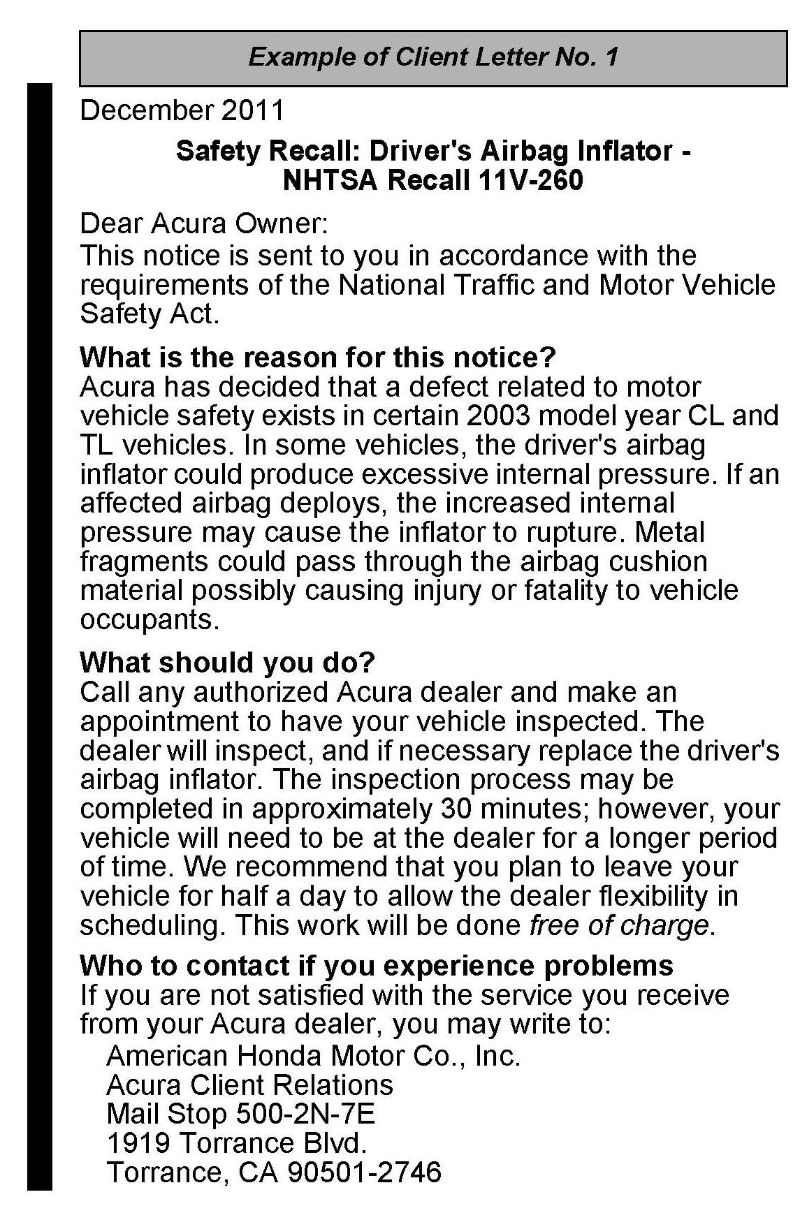 Should a dealership sell an unrepaired vehicle that subsequently causes an injury or damage because of the recalled item, the dealership will be solely responsible to the damaged party, and will be required to defend and indemnify American Honda for any resulting claims. To see if a vehicle in inventory is affected by this campaign, do a VIN status inquiry before selling it.