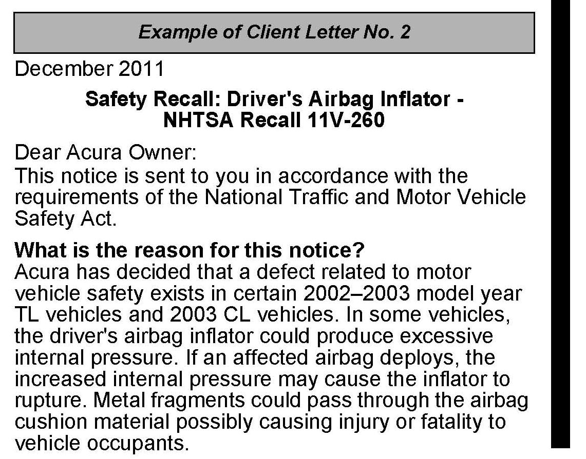 All owners of affected vehicles will be sent a notification of this campaign. An example of the client notification is included at the end of this service bulletin.