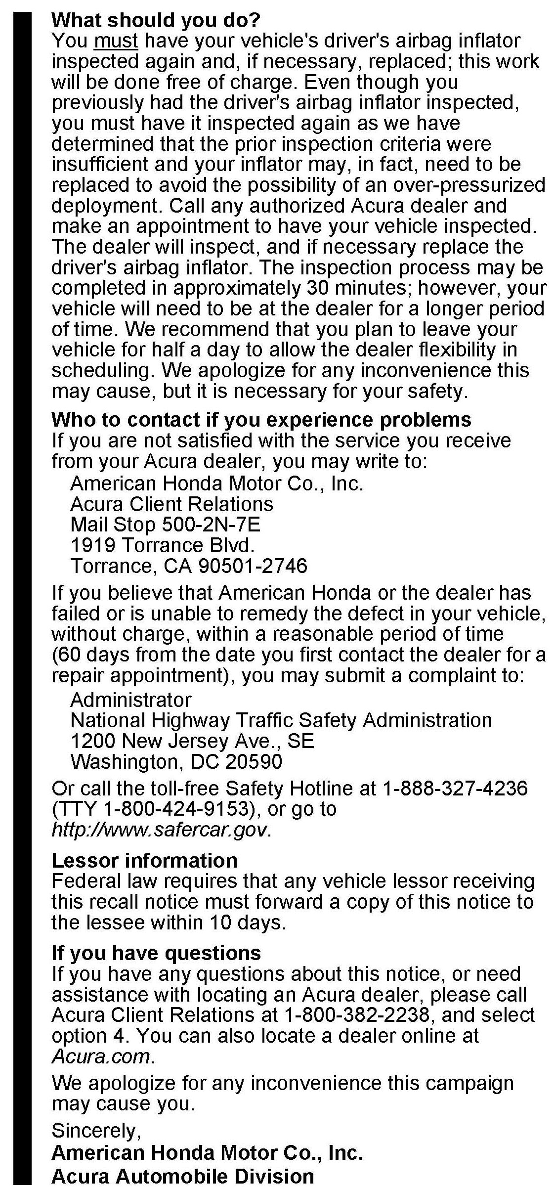 ^ If the defective, undeployed inflator is not returned, the warranty claim for that vehicle will be charged back to your dealership.