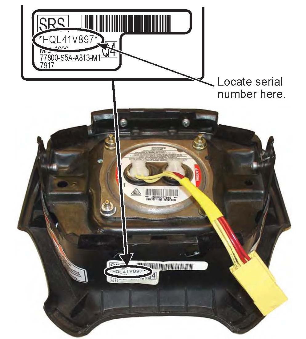 2. Locate the serial number on the bottom of the airbag. Make sure you also have the VIN, then go to the iN: