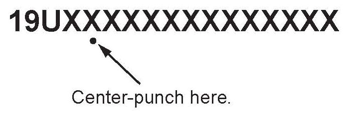 12. Center-punch a completion mark below the fifth character of the engine compartment VIN: