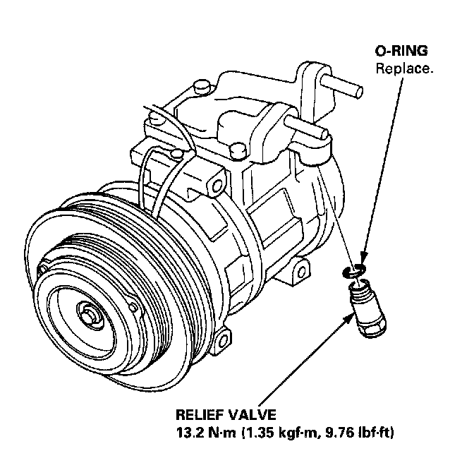 3. Replace the O-ring with a new one at the relief valve, and apply a thin coat of refrigerant oil before installing it.