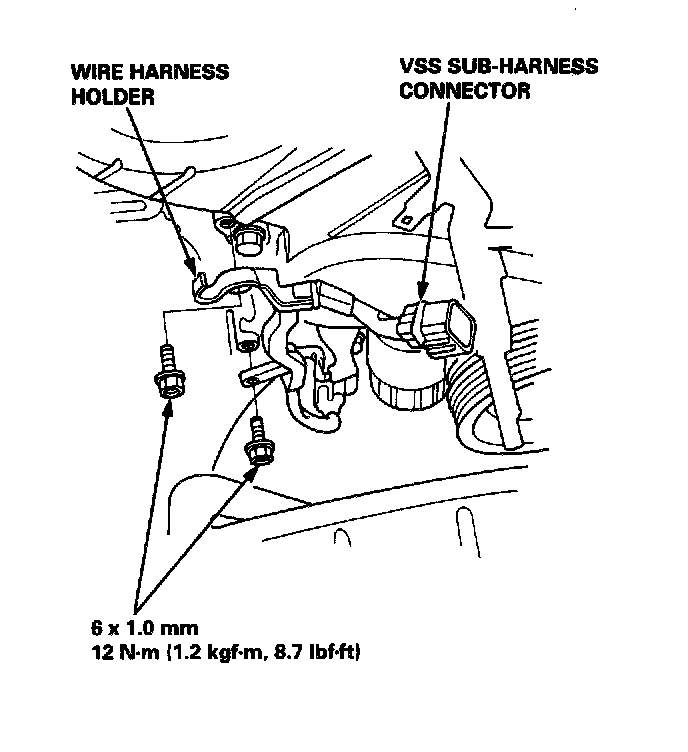8. Disconnect the vehicle speed sensor (VSS) sub-harness connector, then remove the wire harness holder.