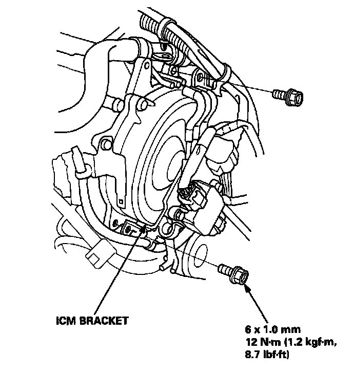 10. Remove the vacuum hoses and ignition control module (ICM) bracket.