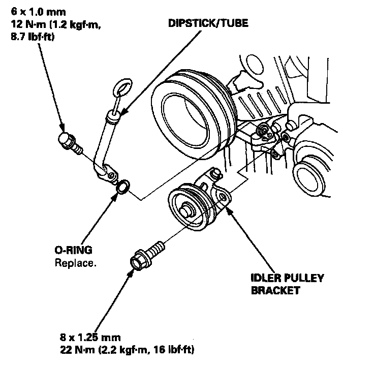 6. Loosen and retighten the timing belt adjusting bolt to tension the timing belt.