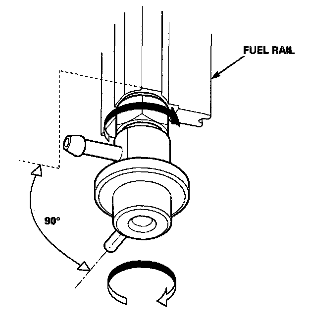 Reassembly1. Install the fuel pressure regulator in the fuel rail. Turn it by hand until it stops.