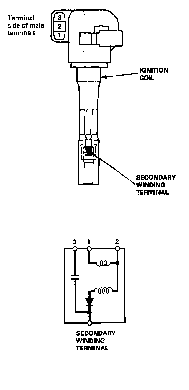 4. Using an ohmmeter, measure resistance between the terminals. Replace the coil if the resistance is not within specification.