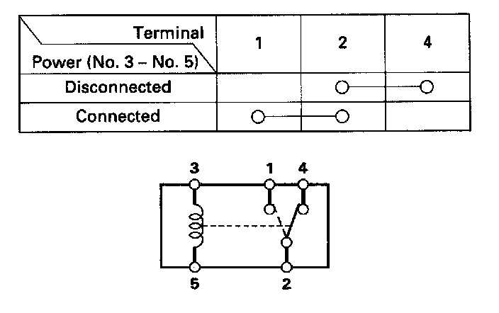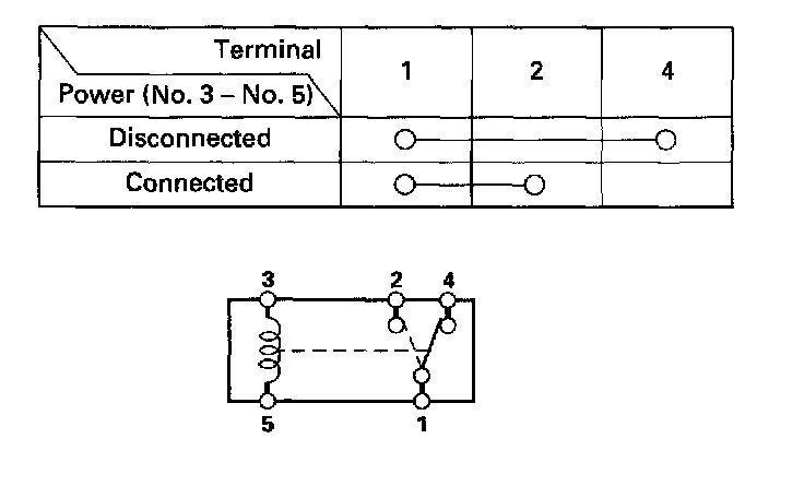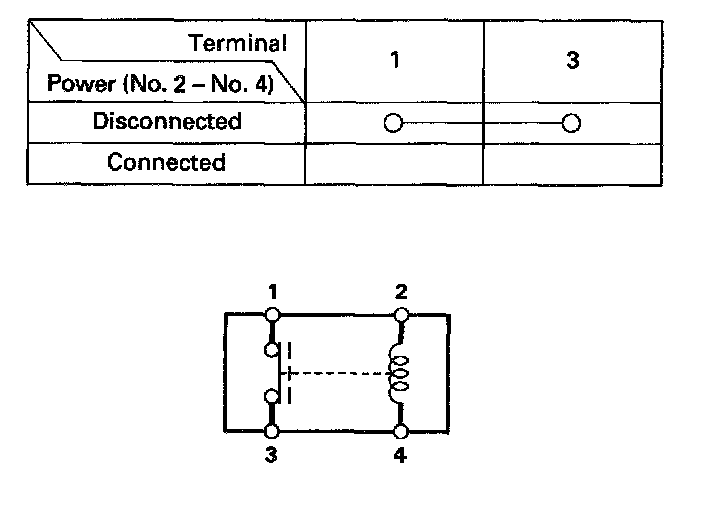 - There should be continuity between the No.2 and No.4 terminals when power is disconnected.