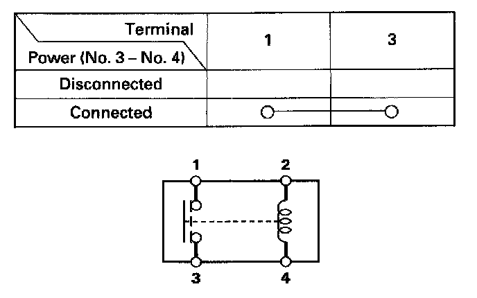 - There should be continuity between the No.1 and No.3 terminals when power is not connected to the No.2 and No.4 terminals.