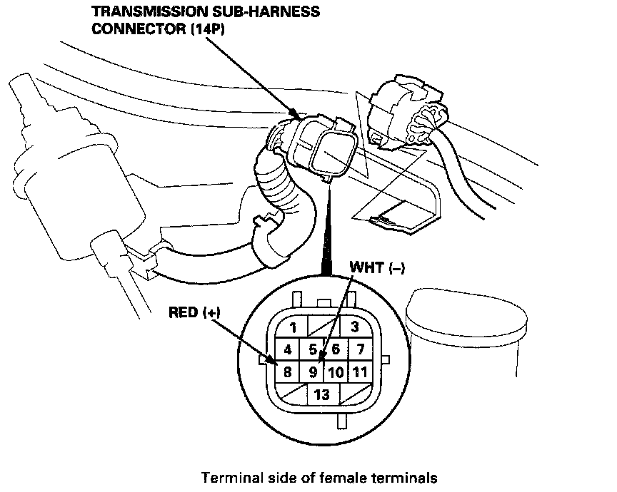 11. Stop the engine, and connect the transmission sub-harness connector (14P).